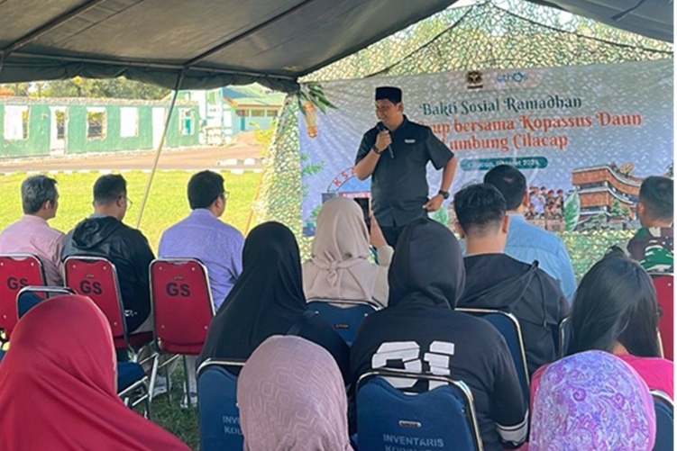 Komandan Pangkalan Kopassus Daun Lumbung Cilacap, Akhmad Fahrudin, memberikan sambutan kepada masyarakat dalam kegiatan bakti sosial Ramadhan bersama Ethos Group. (ISTIMEWA)Sementara itu, Komandan Pangkalan Kopassus Daun Lumbung Cilacap, Akhmad Fahrudin, mengapresiasi kolaborasi yang terjalin dalam kegiatan sosial tersebut. Ia berharap kegiatan sosial seperti ini dapat terus dilakukan sehingga manfaatnya dapat dirasakan lebih luas oleh masyarakat.